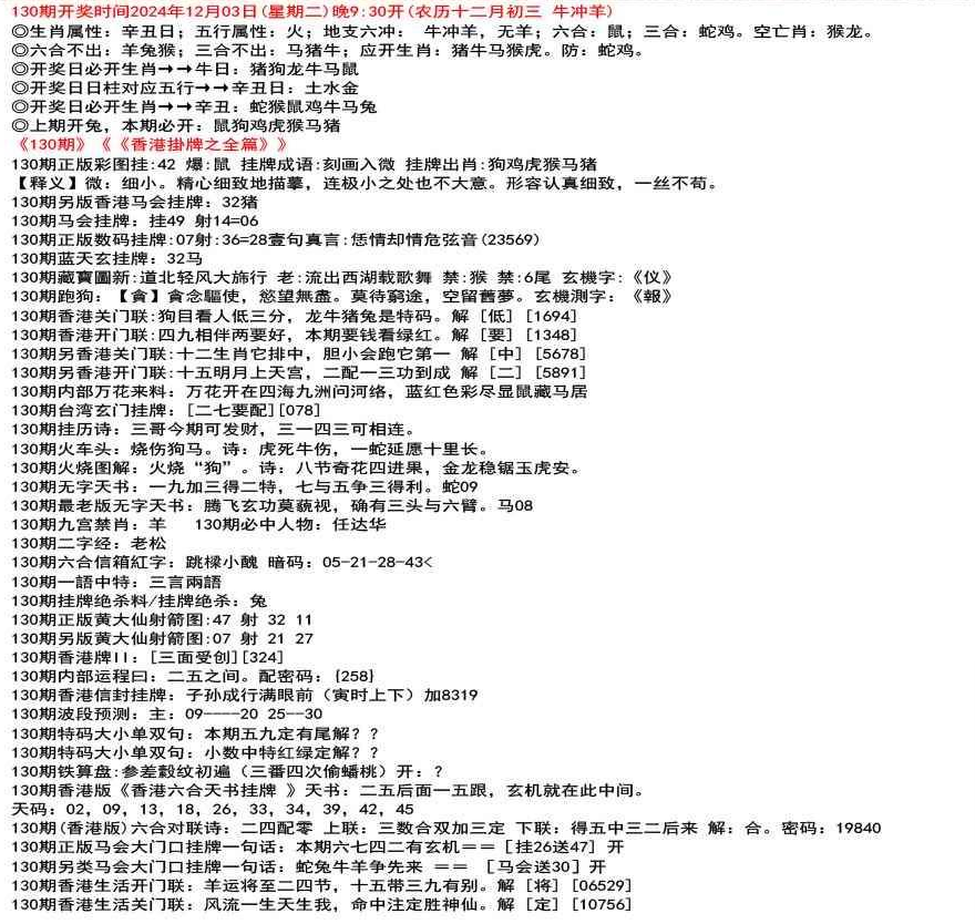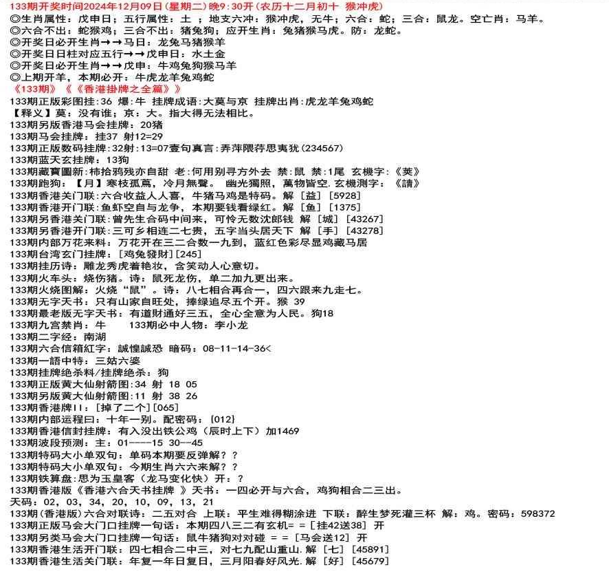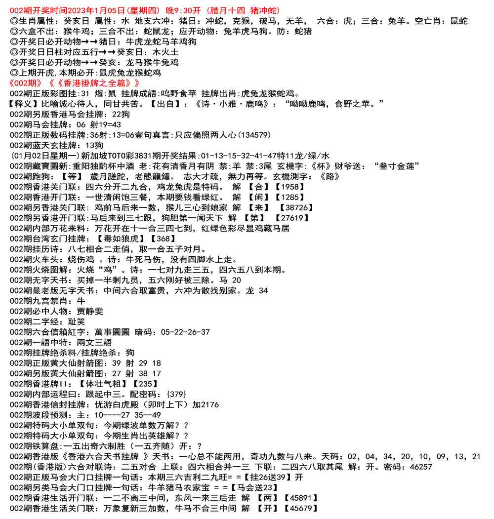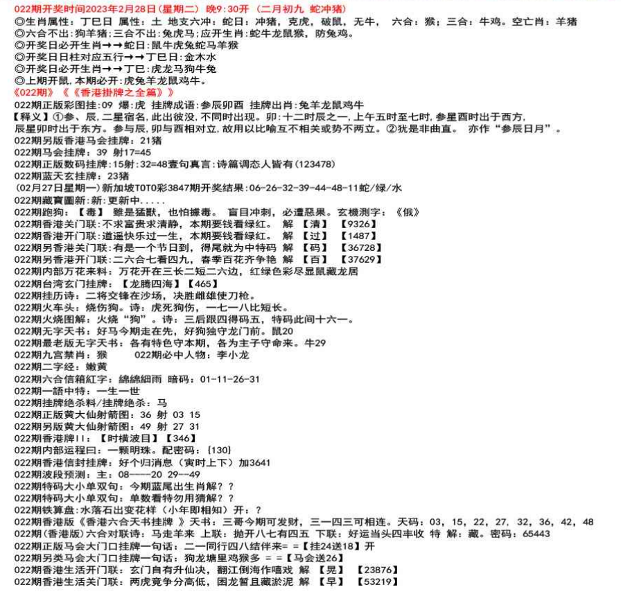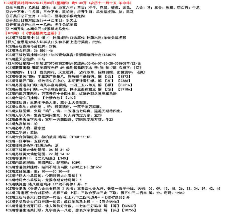 ◎六合不出:牛龙猴;三合不出:鼠蛇鸡;应开动物:羊兔猪虎狗。防:鼠马