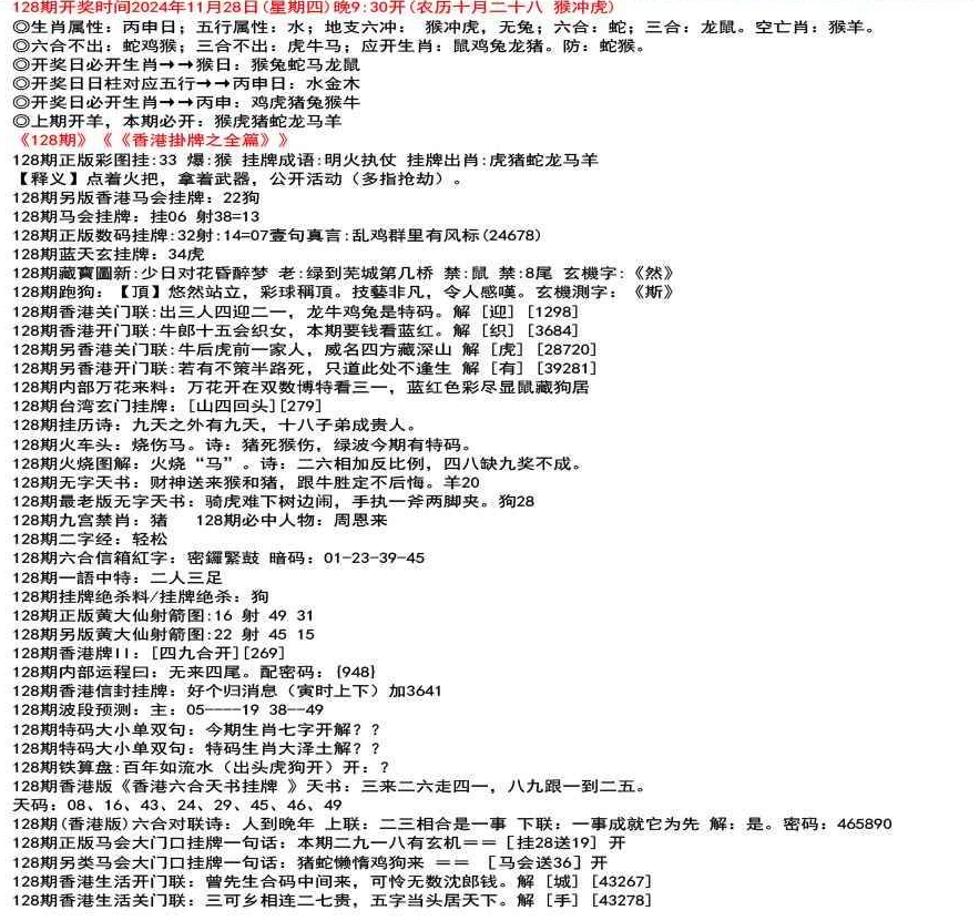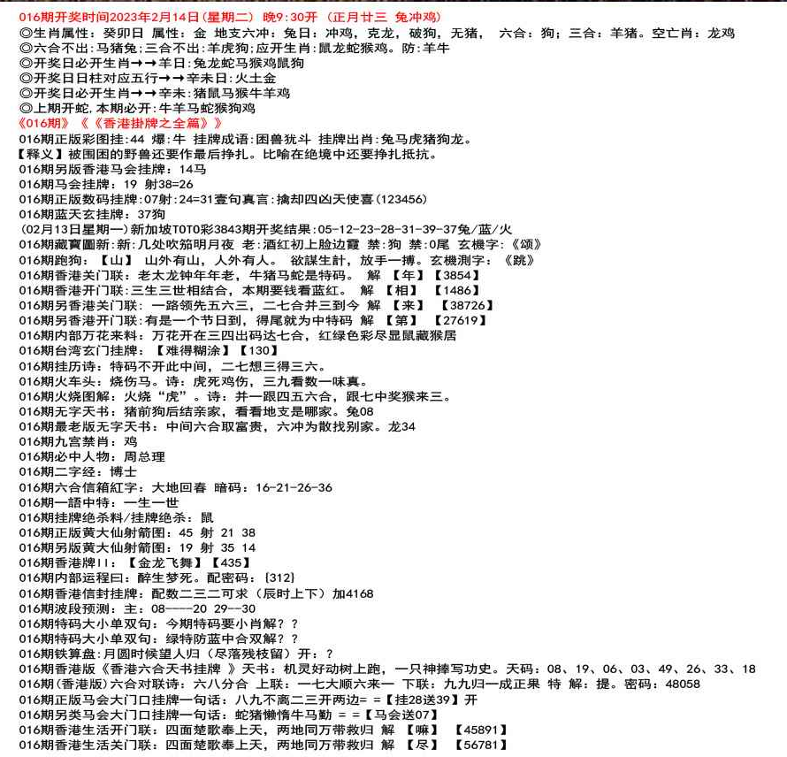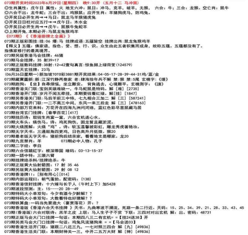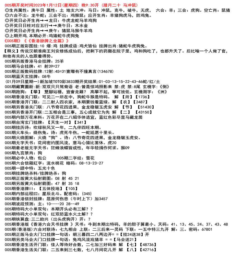 ◎六合不出:牛龙猴;三合不出:鼠蛇鸡;应开动物:羊兔猪虎狗。防:鼠马