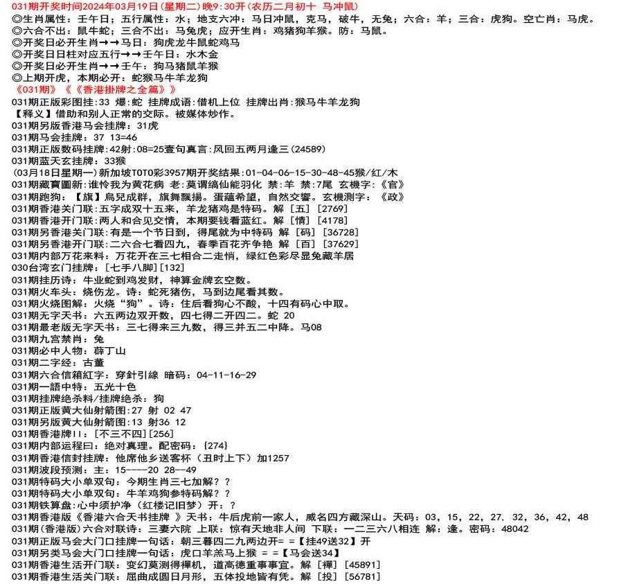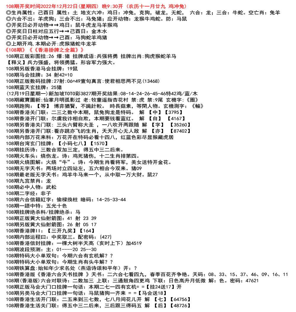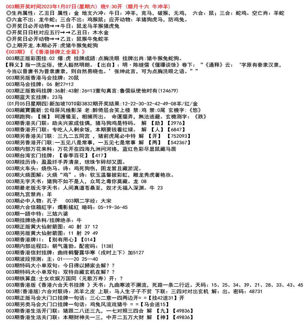 (12月26日星期一)新加坡TOTO彩3829期开奖结果:03-10-31-32-44-47特41狗/蓝/水