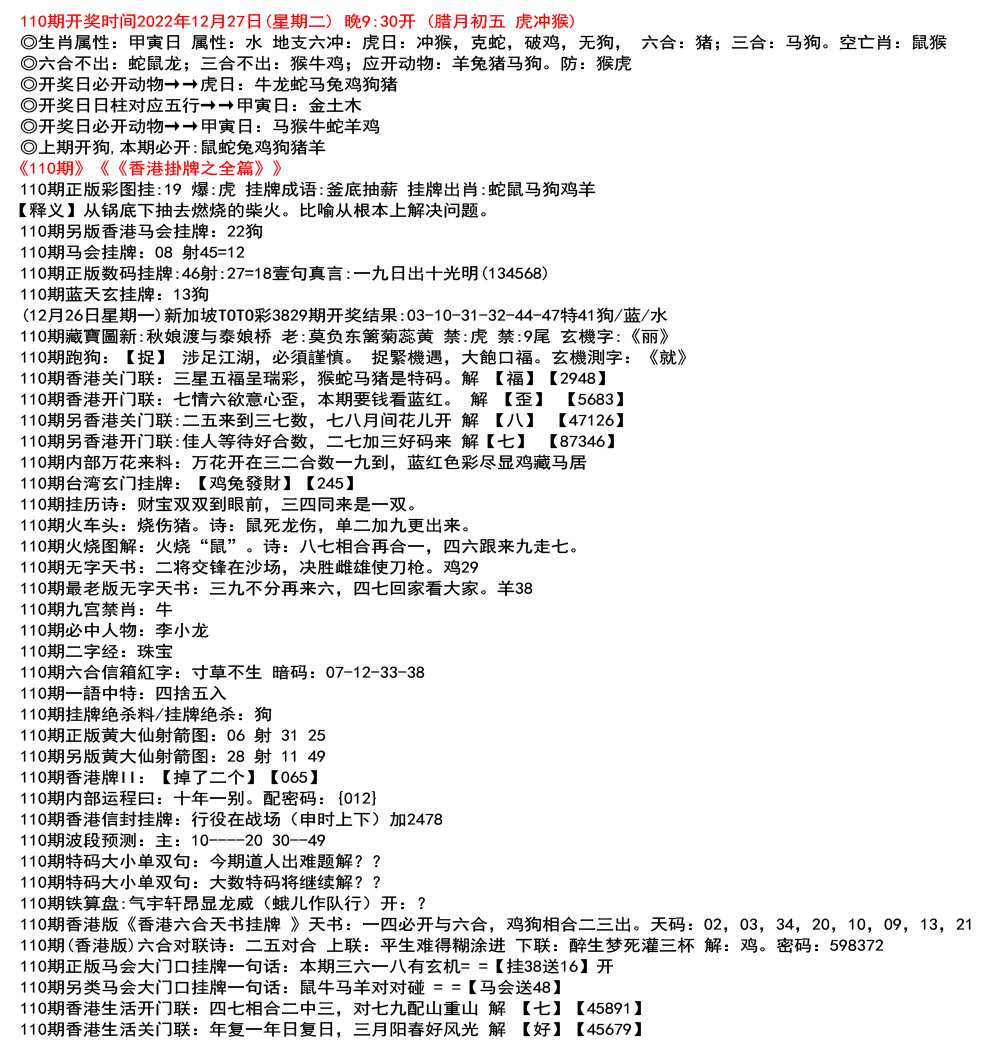 111期香港生活开门联:马后来到三七跟,狗胆第一闻天下 解 【第】【27619】