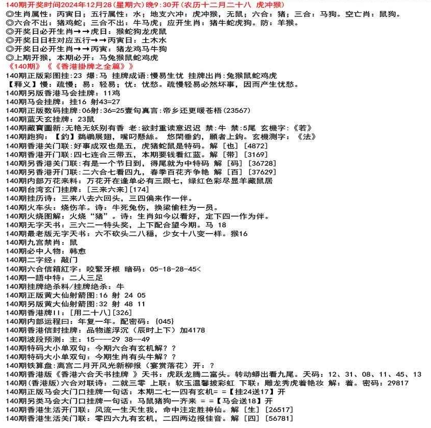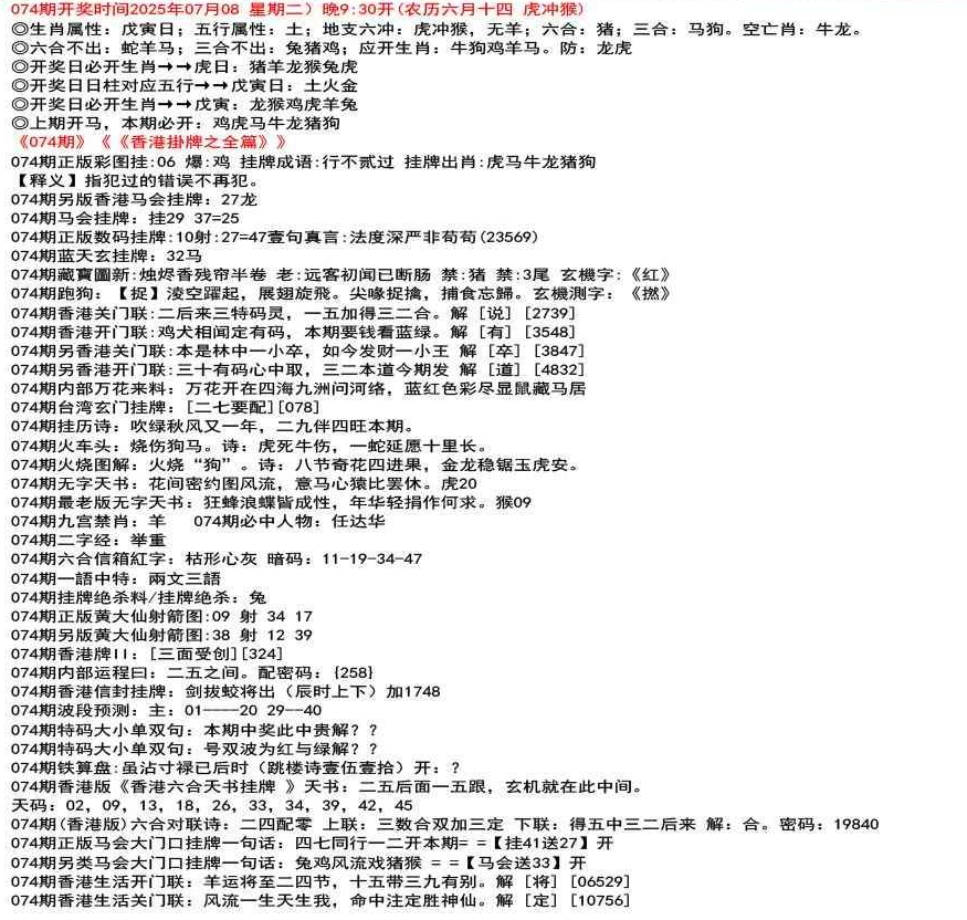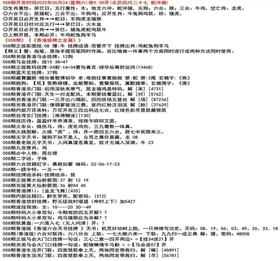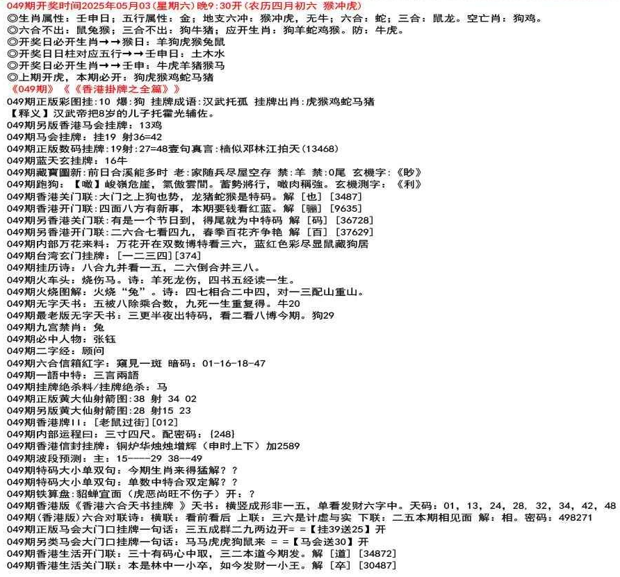111期香港生活关门联:鸡前马后来一数,猴儿三心到娘家 解 【来】【38726】