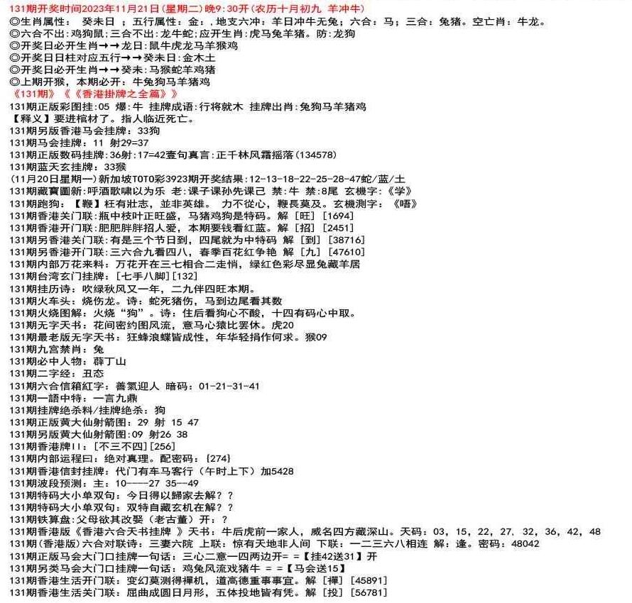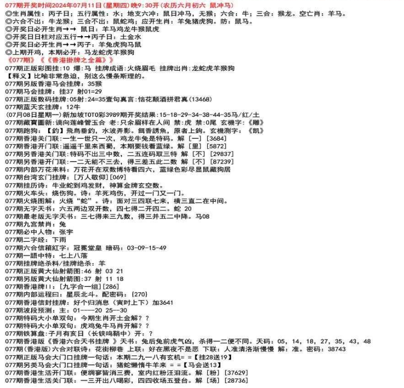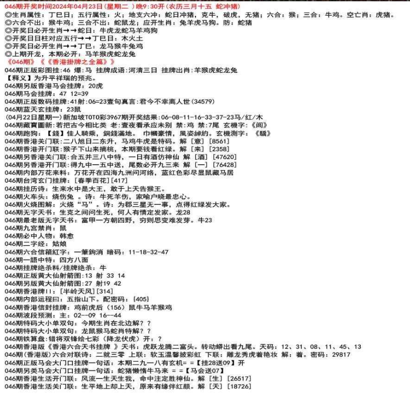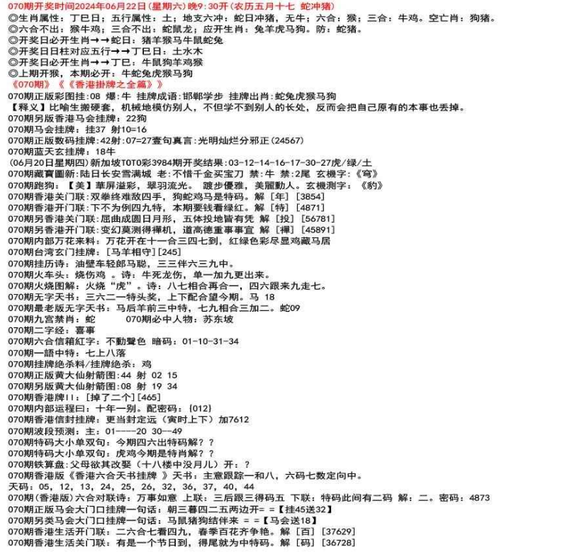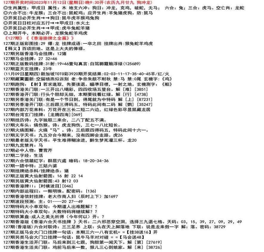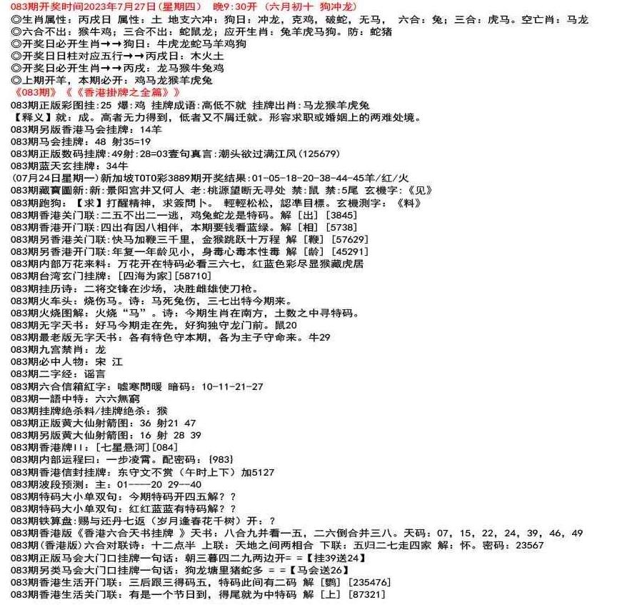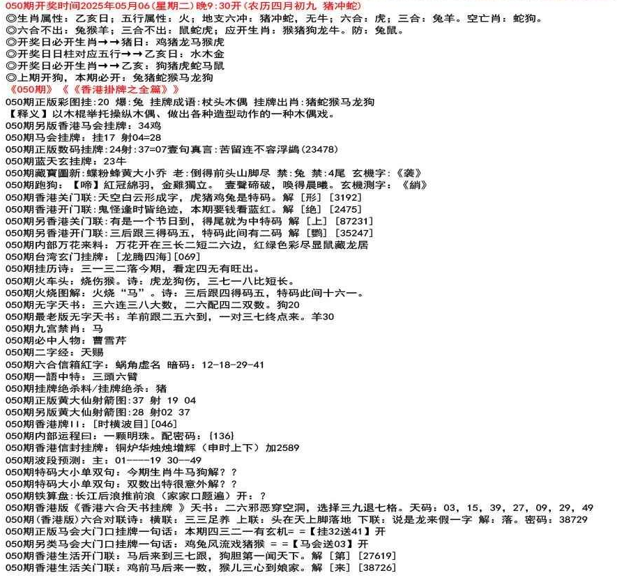 111期(香港版)六合对联诗:三三足养 上联:头在天上脚落地 下联:说是龙来假一字 解:落。密码:38729