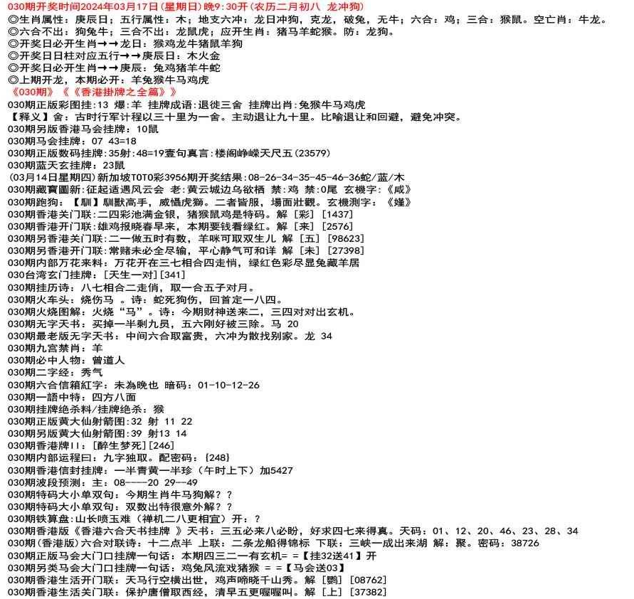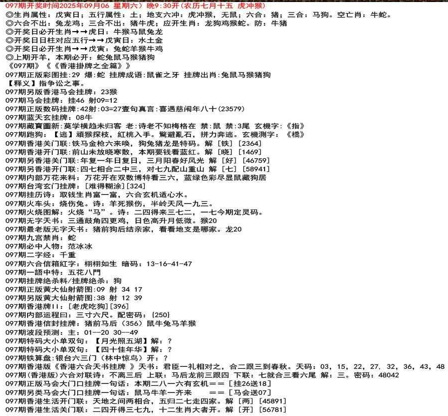 111期香港版《香港六合天书挂牌 》天书:二六邪恶穿空洞,选择三九退七格。天码:03,15,39,27,09,29,49